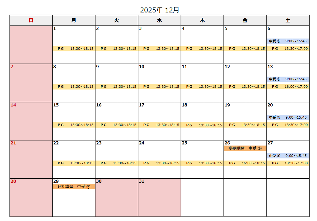 ※ PG ・・・ プログラミング教室開講予定日