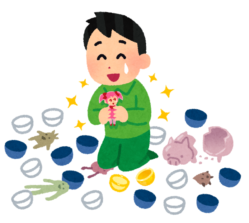 さて、このゲームは所持金500円で全4種のカプセルトイをコンプリートするといういわゆる運ゲー。ダブりが許されるのは1回まで。